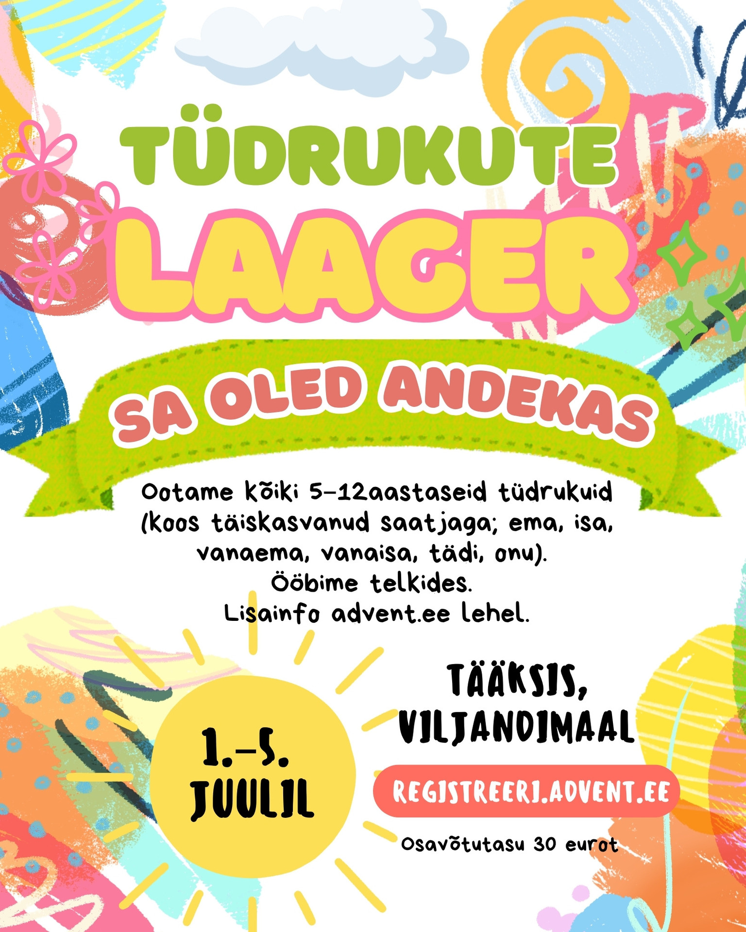 Tüdrukute laager 1.–5. juuli Tääksis