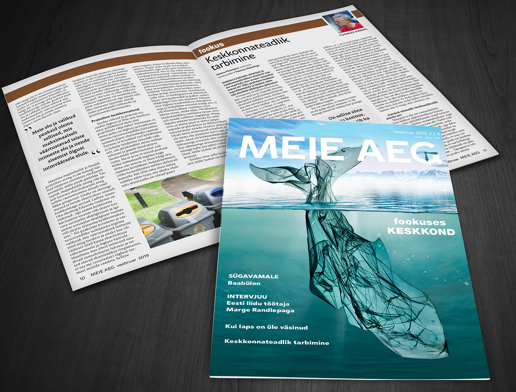 „Elan kahe paradiisi vahel sellel Maal, mille Jumal on minu koduks loonud,” tõdeb Mervi Kalmus fookuses ja kutsub lugejat üles vaatama keskkonnahoidu vägagi isiklikust vaatepunktist: „Ainult isikliku vastutuse tajumine annab tõuke paremateks valikuteks ja positiivseteks muutusteks.” Loodusesõber Toomas Daniel räägib intervjuus Helena Ploompuule, et kuigi päris keskkonda säästev eluviis ei ole tänapäeval enam võimalik, saab siiski igaüks üht-teist ära teha: „On selline sõna nagu kasinus, millest räägib ka Piibel – mul ei ole kõike vaja.”
