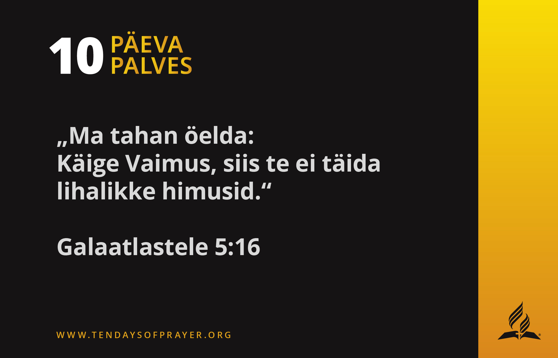 - Kallis Issand, ma tean, et Sa soovid, et saaksin Sinu väes kõigist pattudest jagu. Palun täida mind Püha Vaimuga ja juhata mind kõigesse tõesse (Jh 16:13).