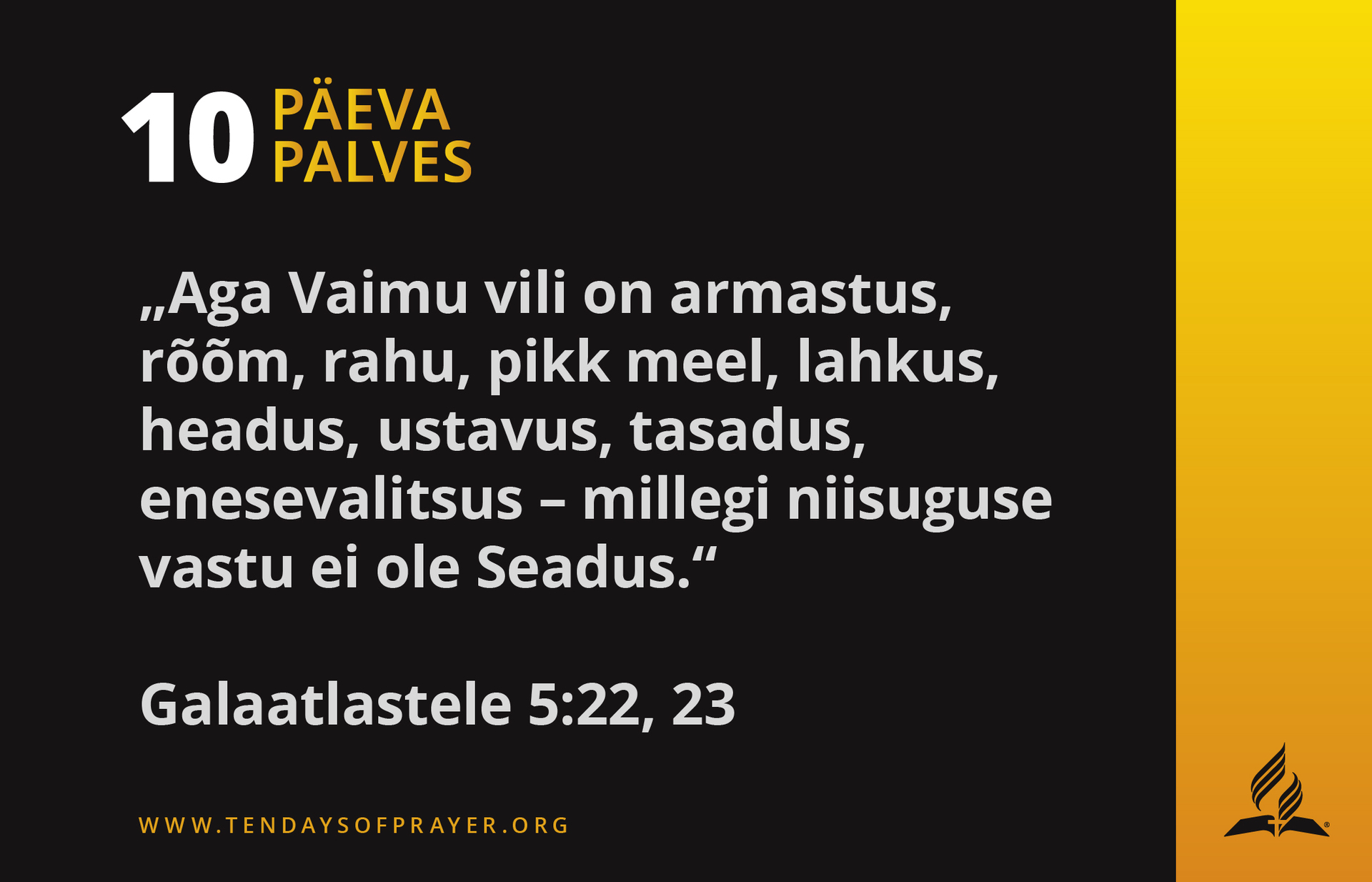 - Kui veedan aega palves ja Piiblit uurides, palun risti mind aina enam Püha Vaimuga. Lase armu lõppematul vool minu kaudu katkise maailmani jõuda.