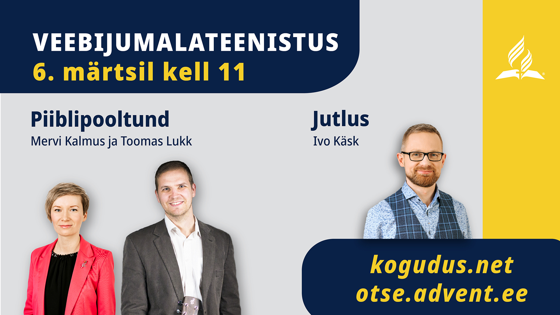 Ootame kõiki osa saama veebijumalateenistusest igal laupäeval algusega kell 11.