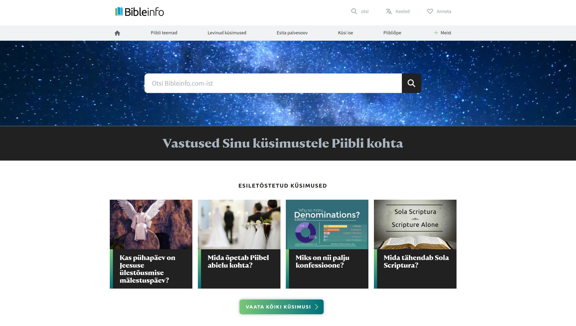 Mõned kuud tagasi sai laialdasemalt kättesaadavaks uus eestikeelne veebileht (https://www.bibleinfo.com/et), kuhu koondatakse Piiblil põhinevaid vastuseid erinevatele küsimustele elu ja usu kohta. Selle veebilehe eesmärgiks on jõuda nende inimesteni, kes otsivad vastuseid ning kes huvituvad kristlikust usust.
