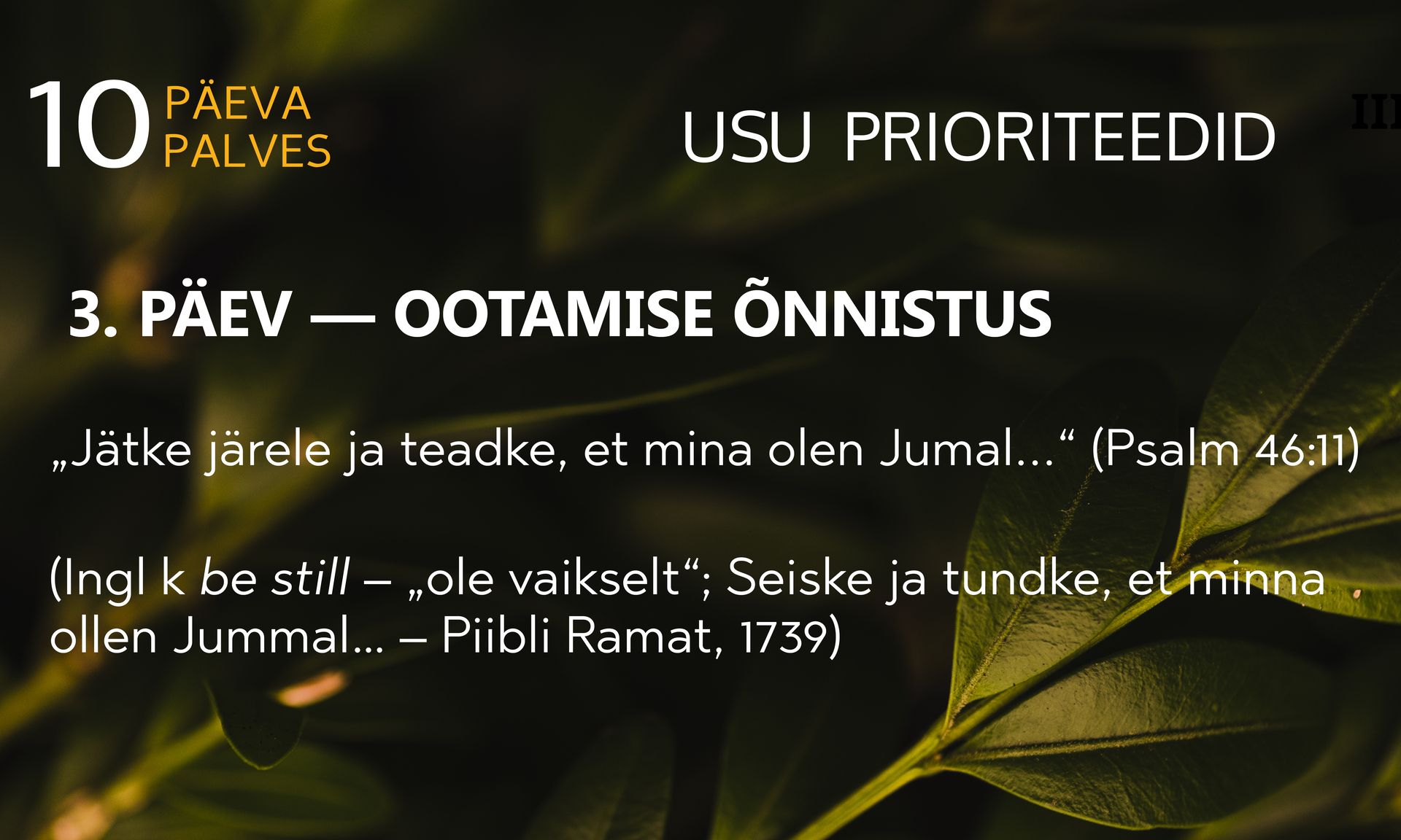 "Jätke järele ja teadke, et mina olen Jumal..." (Psalm 46:11)