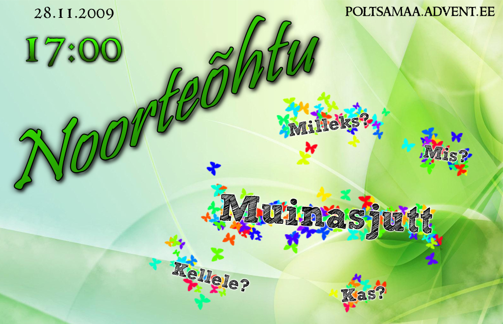 Noorteõhtu teemaks oli valitud muinasjutt. Kehtib ju usuvabaduski ning kõigil on võimalus antud uskuda mida tahab. Kes usub jõuluvana, kes ettemääratust ning kes aastal 2012 tulevat maailmalõppu. Aga siiski on üks usk üle kõige- lootus igavesele elule. See mõte oli ka läbivaks teemaks meie õhtul.