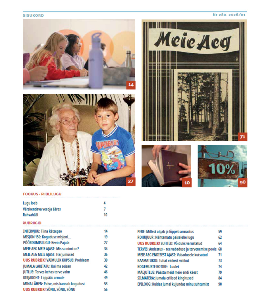 Ajakirjas on sel aastal kolm uut rubriiki: Daniel Meder kirjutab sarja vaimulikust küpsusest, tema abikaasa Svitlana Samoylenko analüüsib suhteid ja seda, kuidas me igaüks ise saame oma suhteid teistega paremaks teha – alustades iseendast, ning Kärt Lazic kirjutab sõnade mõjust meie vaatepunktidele ja mõttemaailmale.