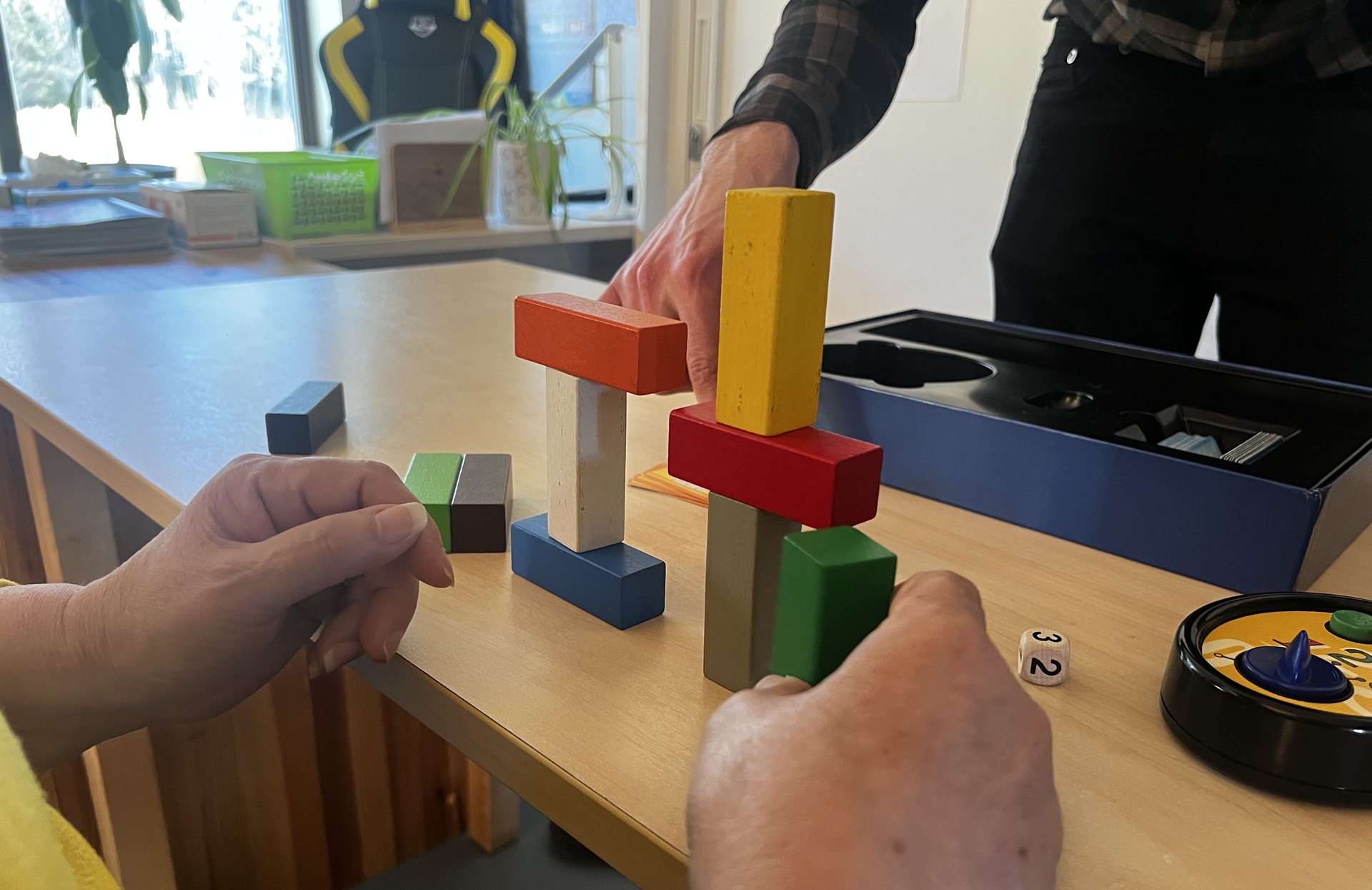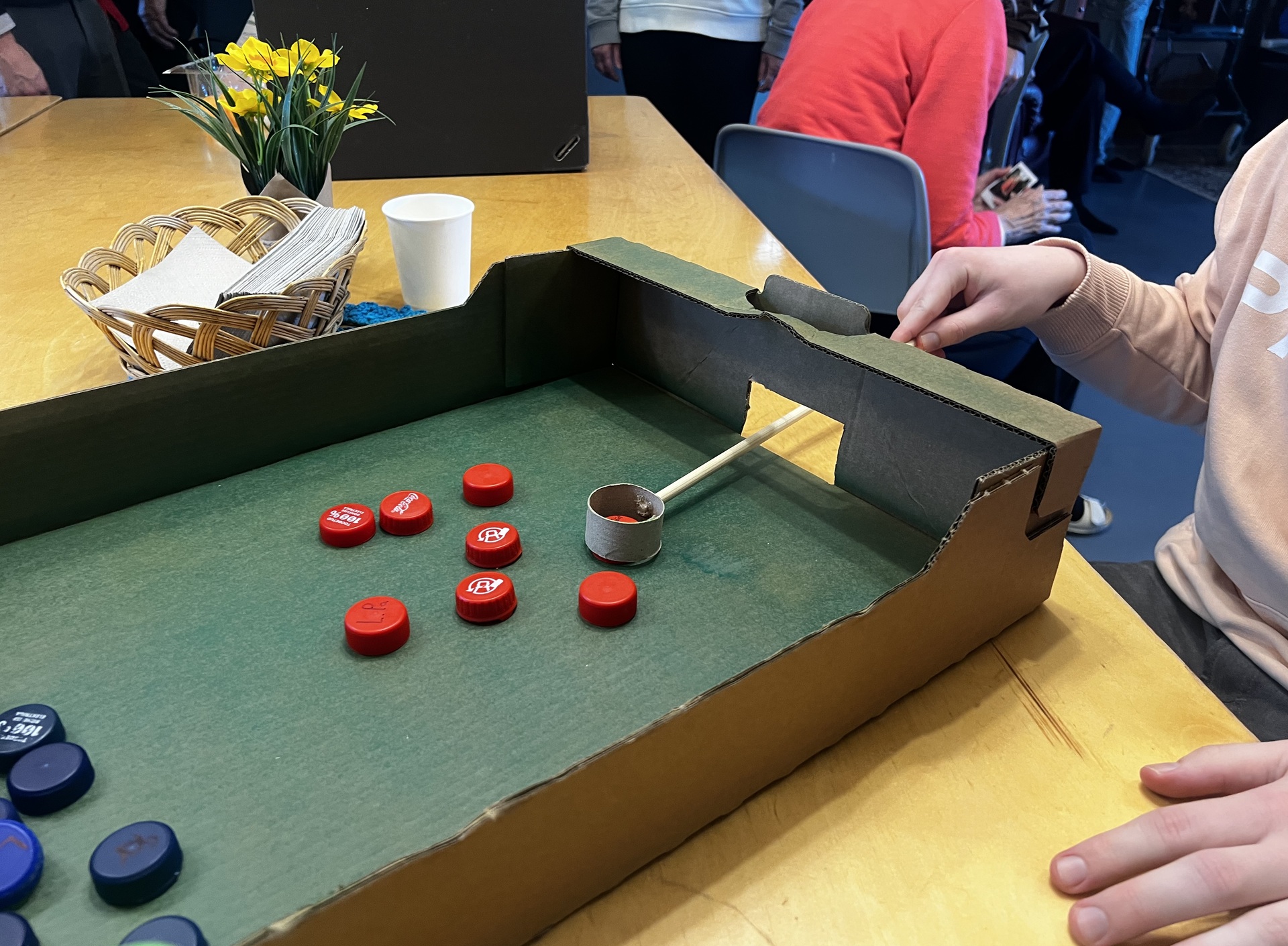 Peamisteks tegevusteks olime valmis meisterdanud mängud. Valikus oli nii aktiivsemaid liikumist nõudvaid tegevusi kui ka rahulikke käelist oskust nõudvaid tegevusi. Kõige aktiivsemad jooksid aga kohe õue jalgpalli mängima. Tubaste mängude hulgas oli ülesandeks näiteks palli veeretades ja visates joogitopse ümber kukutada, basseininuudlite abil õhupalle ämbritesse lüüa, väikeseid lauatennise palle pisikese katapuldi abil munakarpidesse loopida, klotsidest torne ehitada ja muudki. Igale mängule kujunes enda väike fännklubi ning arvestades kui pühendunult kohaliku hooldekodu elanikud nendesse suhtusid, ei imesta kui mõni enda lemmik mängus ka peaaegu professionaaliks sai!