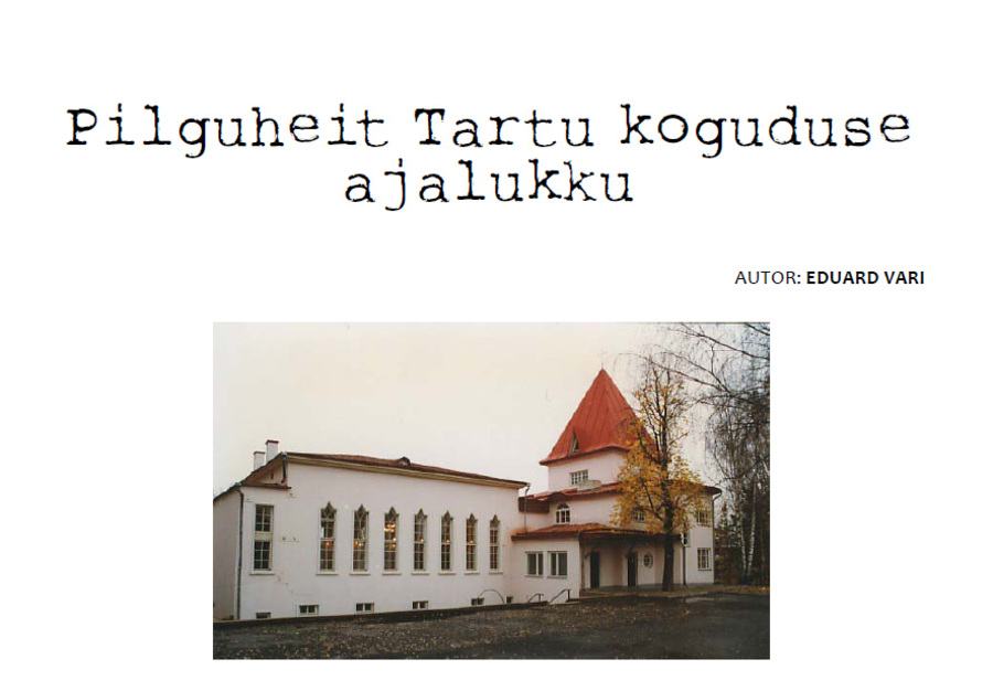 Nende lakooniliste märkmete kaudu on püütud näidata tegevust kogudusemaja algusest 1930.a kuni nõukogude valitsuse tulekuni 1940. aastail. Peale tegevuse, mis toimus koguduse osakondades, oli sellele perioodile iseloomulik evangeeliumi kuulutamine neli korda nädalas. Ajuti toimus see ka tihedamini, kui üüriti ruume suuremate piibliseminaride jaoks.