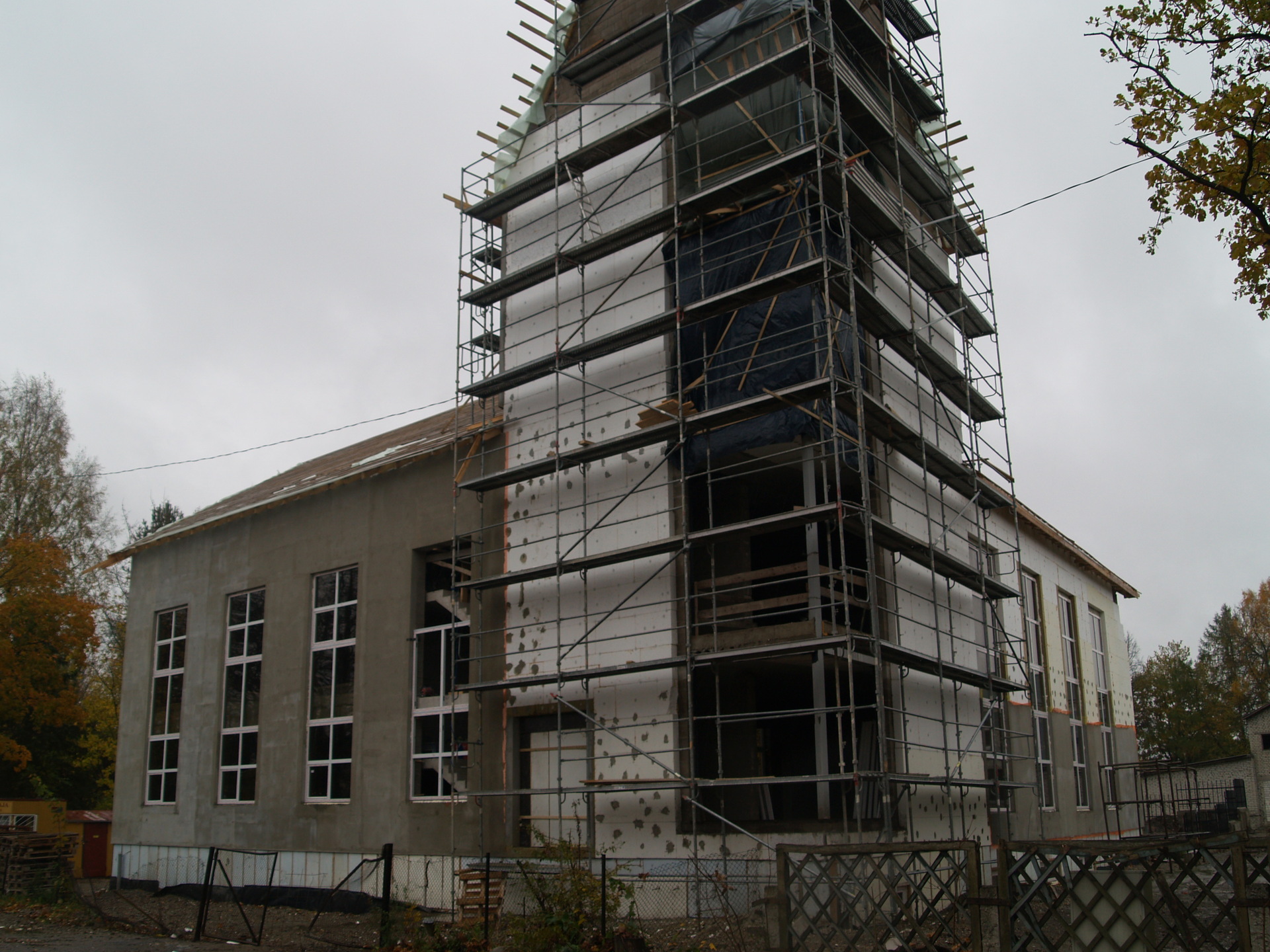 Neljapäevase (14. oktoobri) seisuga olid kirikul ees enamus aknaid, ette panemata olid veel suured nurgaaknad.