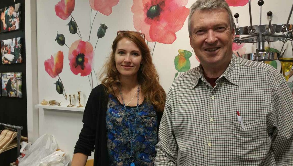„Minu jaoks ei ole paremat töökohta,” ütles Gintice Serepiniene (pildil vasakul), poe mänedžer. Inimesed käivad tema poest läbi, vaatavad riideid või jalutavad niisama. Mõned istuvad kohvikunurgas ning joovad teed, kuulavad muusikat ja naudivad sõbralikku vestlust.